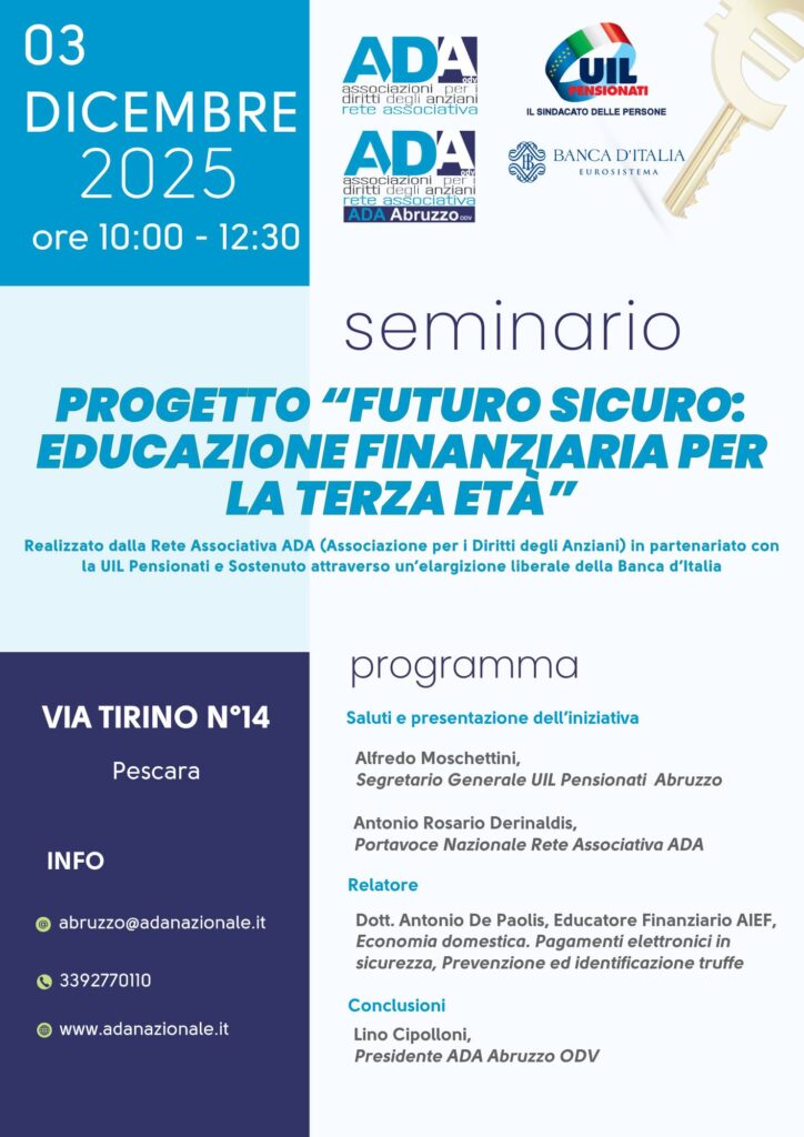In risposta a tale contesto, la Rete Associativa ADA ha progettato una serie di momenti di sensibilizzazione finalizzati a rafforzare l’autonomia finanziaria degli anziani e a migliorare la loro sicurezza nell’utilizzo degli strumenti di pagamento elettronici, in stretto raccordo con la UIL Pensionati, garantendo supporto territoriale e sostenibilità economica.