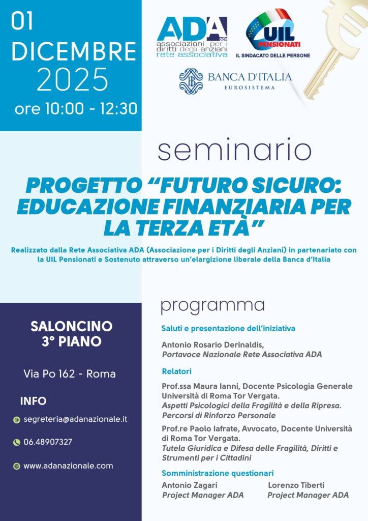 Realizzato dalla Rete Associativa ADA (Associazione per i Diritti degli Anziani) in partenariato con la UIL Pensionati e Sostenuto attraverso un’elargizione liberale della Banca d’Italia