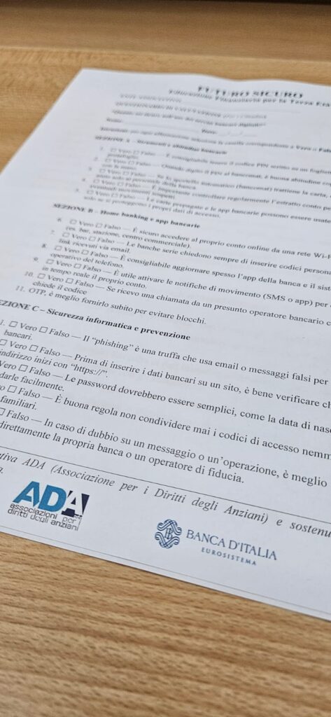 Corsi di educazione finanziaria, laboratori pratici, supporto individuale e campagne informative sulla prevenzione delle frodi si sono succedute nel corso delle attività progettuali. L’obiettivo è migliorare le competenze finanziarie, ridurre l’ansia legata all’uso degli strumenti digitali e favorire una maggiore autonomia e inclusione sociale degli anziani.