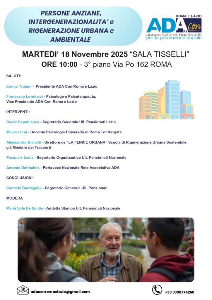 LaPresse: Longevità e rigenerazione urbana, proposte a confronto all’associazione per i diritti degli anziani ADA Con APS Roma e Lazio https://www.lapresse.it/video/2025/11/18/longevita-e-rigenerazione-urbana-proposte-a-confronto-allassociazione-per-i-diritti-degli-anziani-ada-con-aps-roma-e-lazio/